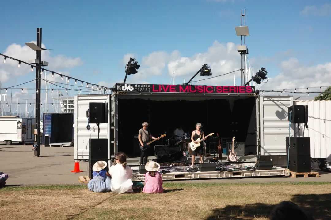 The harbor side looked like it was hosting some sort of market-like event. A band was playing on a small stage made of containers, and the audience was almost all passersby.